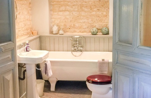 A master with super-king 6 ft bed or two 3ft twins if preferred, is very cottage and classic in style and has an a-joining bathroom with a footed stand alone antique bath.