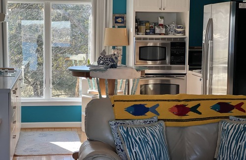 The Breton Bay Breezeway is an one bedroom efficiency apartment that overlooks Breton Bay. This luxury apartment is decorated in a nautical theme, is equipped with everything necessary for a great vacation, full kitchen, linens, appliances and a beautifu view. Apartment is above a detached garage. Owners live at the house on the property, use the lower garage for fitness. Guests have access to the pier for fishing and crabbing, and for enjoying the incredible sunsets.
