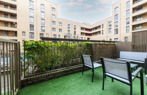This huge 4 double bedroom townhouse with private entrance on ground level. Boasting a separate kitchen and dining area downstairs leading to outside terrace overlooking communal gardens and an upper level reception area with expansive living area and huge King size sofa bed.