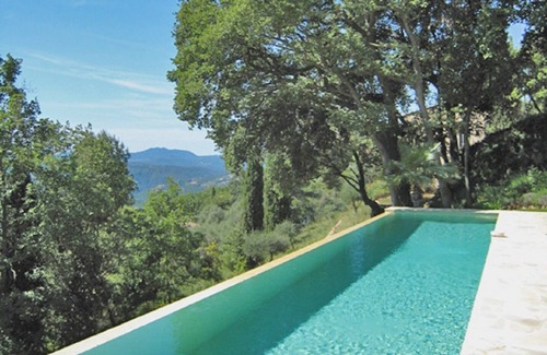 You will find Mas Belvédère in the hills north of Cannes. The property offers magnificent views of the Mediterranean Sea and the Esterel Mountains. Located on a quiet cul-de-sac with absolutely no interference from neighbors. Great for families! The main house sleeps four and the guest house at the pool sleeps two. There are areas for outdoor dining and relaxing both at the main house and along the pool. We hardly ever eat indoors ourselves! Security is very high with electric gates, alarm and fence all around.