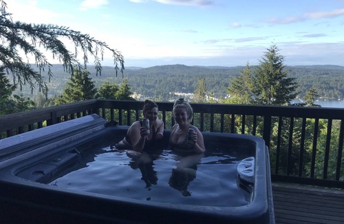 Parking available, car needed here as we are half way up mountain ridge. Hot tub use provided, Seperate suite with own deck and entrance , kitchenette and small fridge and coffee maker 3 piece bathroom .2 min to main village, ocean view. Also pet friendly as we have a dog.
