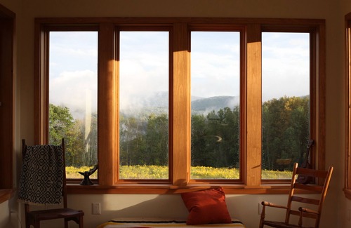 Our home sits in the middle of an open meadow with epic views of the Catskill Mountains. The property has over 15 acres of mowed paths to roam and a small forest of maple, ash and oak trees. The house sits above the scenic hamlet of Halcottsville, which is a 2 minute drive or 15 minute walk down the hill and has a variety of Spring/Summer activities including kayaking. We designed and built the house ourselves, using our skills in architecture and furniture-making to bring a timeless quality to the home that we hope is both intimate and expansive.