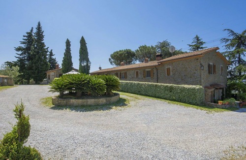This large working farm in Lamporecchio, Italy, offers a holiday rental experience with seven fully renovated apartments. Enjoy the property's amenities, including a swimming pool, yard, internet WiFi, and parking. The farm boasts breathtaking views of the surrounding countryside from its elevated position on a hilltop.