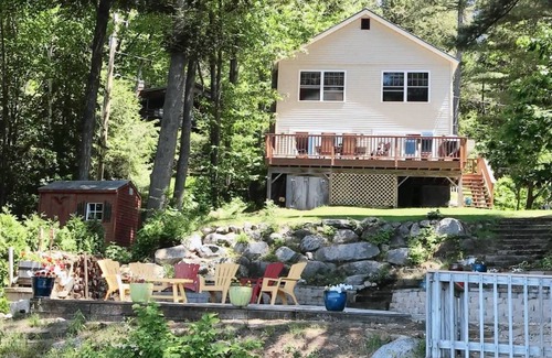 Stunning waterfront views of all of Pleasant Lake & majestic Mt. Kearsarge across the water. One of the finest sandy beaches in the region. This charming 3 bedroom cottage was completely renovated in 2011. Upscale kitchen with gleaming stainless appliances & custom counters. High beamed ceilings create interest & volume. Pellet stove keeps up with cool nights in early spring and late fall. Large master suite w/private bath & sliders to deck. Two bunk rooms are perfect for kids and guests. Fabulous location on crystal clear 600 acre Pleasant Lake. Close to New London village and Inn at Pleasant Lake. Level lawn.