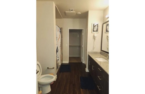 ✨️This Stylish 2bd 2ba Apartment has everything you need for a awesome trip, weather you're here for business or leisure! With a gorgeous outdoor pool this smoke- free apartment building has a outdoor kitchen, fitness center and game room. Each unit has a Fully equipped kitchen with a refrigerator, stove, and microwave. For entertainment, a flat-screen TV comes with All streaming Apps and guests can also appreciate convenience like coffee/ tea Kettle and toaster.