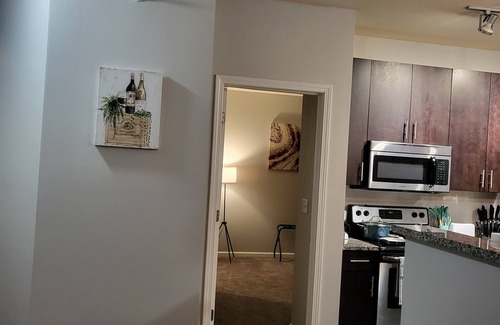 Have fun with the whole family, working roommates or couples at this stylish 2 BR, 2 BA Aparment, Just off I-69, which can get you places within 15-20 min. Close to Shops, one of our major hospital and 10 min from Downtown Activities.