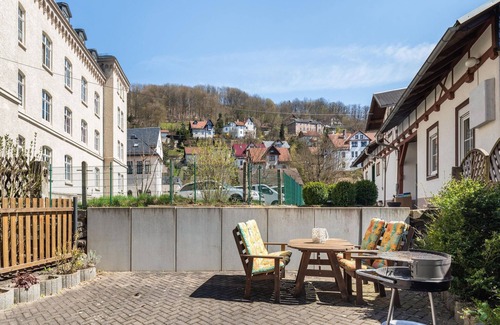 This bright and modern furnished holiday home is in a central yet quiet location in the centre of Sonneberg in Thuringia. The flat extends over two floors and the friendly ambience ensures a relaxed holiday mood the minute you step inside. The house is fully equipped with all necessary amenities to make your stay comfortable and enjoyable. A large, furnished terrace in the courtyard is the perfect place to sunbathe, relax or have a barbecue. It also comes with garden furniture, making it an ideal place to spend time with your family and friends. Additionally, for your convenience, it has a washing machine, so you can easily do your laundry during your stay.