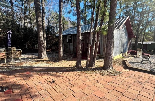 Stylish Cabin in Kennard with Private Hot Tub On Screened in Porch. Grill and Fire Pit. New beautiful tile shower, 100 year old brass bed converted to King, Small fridge, microwave, coffee pot . 4 miles from beautiful Ratcliff Lake with hiking and fishing (license required). Get out of the city and relax. Stay among the Pine Trees.Star Link wifi and Roku TV or listen to old records or watch DVD movies. Designated parking at your door. Window A/C and Heating.Food options are available that will await you upon your arrival for additional cost.Must be ordered in advance. Population of Kennard is less than 400 with a Family Dollar and a Gas Station. Quaint downtown shopping in near by Crockett, Lufkin or Nacogdoches.