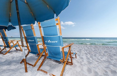 Create lasting beach memories by staying at Azure 605. This gulf-front condominium is the perfect oasis for your next getaway to the beautiful Okaloosa Island beaches. This relaxing condominium offers lovely décor and a truly “at home” feel throughout. Enjoy unparalleled sixth-floor views of the Gulf of Mexico’s crystal-clear waters from the large, private balcony. Upon entering, you will find both guest bedrooms on either side, each with their own flat-screen television, DVD player and private attached bath. A short distance down the hall is the Gulf-front master bedroom, also offering a flat-screen television and DVD player and leading into the spacious master bath. The master bath offers a double vanity and a large, walk-in shower. Adjacent to the master bedroom is the fully-equipped kitchen, leading into the dining area and living room. The kitchen boasts marble countertops along with all equipment and amenities needed for a picture-perfect vacation. The living room includes a flat-screen television and DVD player and leads directly to the expansive balcony.