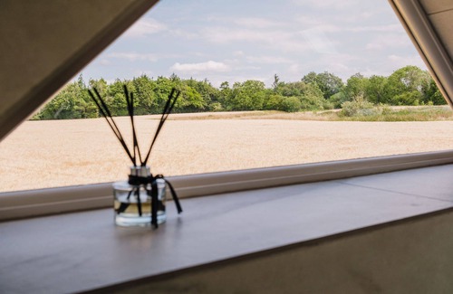 The Barn at High Gables is a newly renovated, beautifully presented, Cotswold holiday retreat which sleeps four guests (no children aged 12 or under permitted), in two stylish ensuite bedrooms, each with sweeping views over the surrounding countryside. The ground floor open plan design is both practical and elegant, with whitewashed oak beams and gentle green accents, creating a sense of rustic countryside charm. Bi-fold doors and full height windows to the rear of the barn create a light, airy living space, opening onto a gravelled courtyard. The comfortable outdoor seating is perfect for soaking up the sunshine and creating a sense of seamless indoor-outdoor living. Tucked away in a peaceful corner of the Cotswolds, The Barn at High Gables is situated at the top of the village of Bourton-on-the-Hill, adjacent to Batsford Estate and 2.3 miles from Moreton-in-Marsh. Village amenities include a local shop, inn, church and Bourton House Garden. The village provides access to many scenic walks, across the rolling countryside.