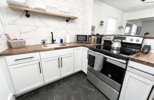 Lovely little space tucked right around the corner from Downtown Wichita. The home is equipped with keyless entry, two luxurious bedrooms (Queen & King), full bath, washer/dryer, coffee station and smart TV.