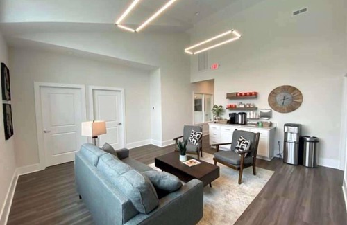 This stunning townhome offers a contemporary, open floor plan designed for modern living. Each spacious bedroom features a private bathroom and walk-in closet, ensuring both comfort and privacy. We have a kitchen, outfitted with stainless steel appliances, including a refrigerator, oven/stove, microwave, toaster, and a Keurig coffee maker for your morning brew. The inviting living room, with its couch and coffee table, is perfect for relaxing or entertaining. Enjoy complimentary Wi-Fi and modern fixtures, along with a washer and dryer, all wrapped in eclectic design touches that blend style and functionality.
