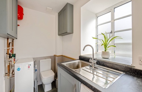 One of these, The Dairy, is a beautifully converted former farm building that has been lovingly restored to the highest standard. This two-bedroom cottage combines original charm with contemporary style, featuring slate flooring throughout the ground floor and a spacious open-plan living area. A log burner adds extra warmth and cosiness, while the fully equipped kitchen makes it easy to prepare home-cooked meals. The Dairy comfortably sleeps up to four guests, with a cot and highchair available on request. Outside, a private sun terrace offers an ideal spot to relax and enjoy far-reaching views of the countryside.