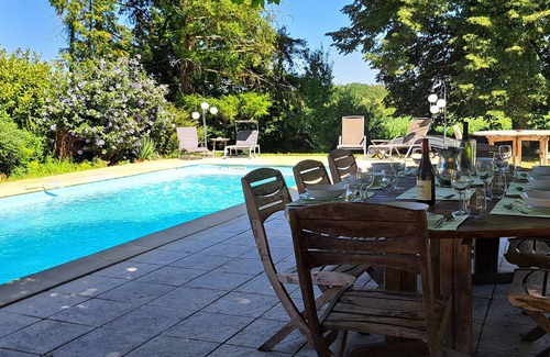 Les Dames was built over 200 years ago by 2 sisters from Lyon who owned a large area of farming land there. Our family have had the delight of owning the house since 1993, and have spent many happy holidays here while we worked and lived in the Far East and Middle East. It has a very special atmosphere which has embraced all our collections of art and decor from our travels. The poolside area is a delight in the daytime but particularly at night where you can enjoy a glass of wine with friends and family in the fresh country air and peaceful surroundings.