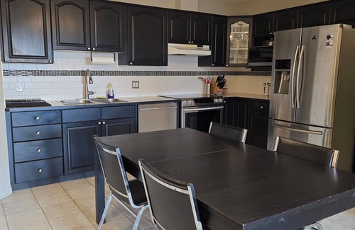 Upstairs, unwind with a pool table, poker table, and a TV, Perfect for gaming nights. Book your stay today for a memorable experience!
