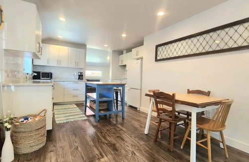 This open-concept, renovated home comfortably sleeps six, with a brand new, full-size sofa bed in the living room. The primary bedroom boasts a queen size bed with a brand new, luxury mattress. The secondary bedroom features two, twin-size, trundle-style beds with ample storage for luggage. Grab a book to enjoy in the cozy reading-nook off the kitchen area.