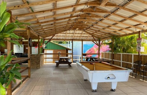 In addition to our great accommodations, we're pleased to offer some exciting amenities. Outside, we have a sparkling pool where you can take a refreshing dip on those sunny days. For those who love grilling, our BBQ areas are perfect for hosting a cookout with friends and family. Our outdoor kitchen is also at your disposal, equipped with a stove, oven, refrigerator, and microwave, making it perfect for preparing delicious meals while enjoying the fresh air. And when it's time to unwind, our relaxation gazebo awaits, equipped with comfortable hammocks where you can kick back and enjoy the serene surroundings.