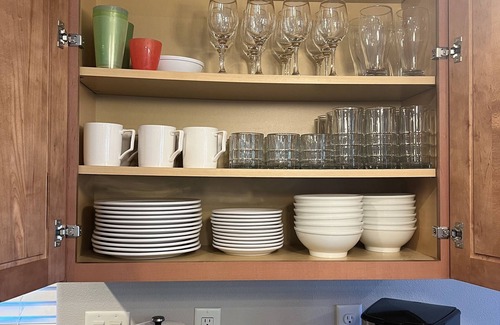 Spread out and relax in this bright, comfy home! Upstairs you'll find a king suite, twin room, full-equipped kitchen, and light, airy living space. Downstairs, enjoy a private bedroom, bath, kitchenette, and its own lounge. Big TV's everywhere, washer/dryer, and a 2-car garage. Out back, a small groomed lawn gives way to a tree-lined wild grassy area with a seasonal creek-perfect for peaceful mornings or sunset unwinding.