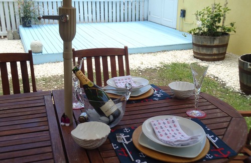 Guests have their own private tropical garden with private access the dog is not allowed in here. Unless invited of course. He usually spends more time with guests than me! There is also Chequers the tortoise who wonders freely so please keep the gates closed.