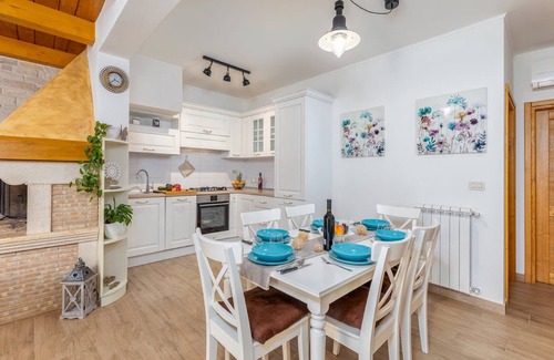 Located in the peaceful village of Čepić, this spacious 3-bedroom villa offers a relaxing escape for up to 8 guests. Just 3 km from the town center, and 15 km from the sea and beach, it’s a great base for exploring Istria’s countryside and coast, with Buje only 12 km away. The private pool, garden, and outdoor kitchen make it ideal for sun-soaked holidays. Inside, the villa features two living rooms, two kitchens, and two bathrooms, plus a cozy fireplace, satellite TV, and air conditioning throughout. Bedrooms include two doubles and a twin room, while sofa beds offer extra sleeping space. The kitchens are fully equipped with coffee machines, dishwashers, ovens, and even a juicer. Outdoors, enjoy the fenced garden with barbecue, sun loungers, trampoline, table tennis, and play equipment. There’s private parking, free WiFi, and a seasonal pool (open May–September). A fun-filled and family-friendly retreat in the heart of Istria.
