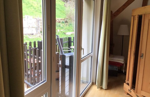 The apartment is located in a stylishly restored house in Bad Schandau in the side valley, also called Zauketal. Located directly on the mountain slope with adjacent hiking trails. In keeping with the character of the house, the rooms are classily furnished with real wood furniture. The two apartments on the ground floor and first floor were restored in 2008/09 and are located in a house that was built in the early 20th Century was built. There is a fireplace in the apartment on the ground floor.