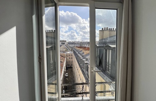 Sunny 2-room apartment overlooking the rooftops of Paris and the Eiffel Tower.