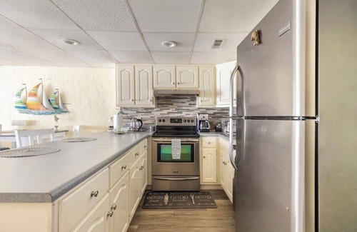 1 b /1 bath ground condo just steps away from the ocean. King bed in the master, with queen-size sofa pull-out.