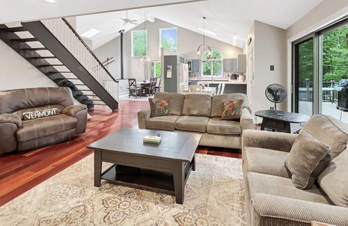 Escape to Sugar Hollow, a peaceful and private summer and fall rental tucked into the tranquil woods of Chittenden, Vermont. This spacious and beautifully maintained four-bedroom, three-bathroom home comfortably sleeps 10 guests, making it the perfect destination for families or groups looking to relax, explore, and reconnect with nature.