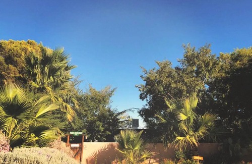 The Mojave Wanderer Room is #2 of the 5 rooms at Spin & Margie's Desert Hideaway, a quiet retreat oasis on 29 Palms Highway, less than 5 minutes from the center of Joshua Tree. This charming room has a kitchen and a small second bedroom perfect for children, family or additional friends. The room lets out into our shared courtyard oasis. ]Situated on our 2.5 acre private grounds with a beautiful swimming pool and ample free parking. Peaceful, secluded, but close to town and the National Park.