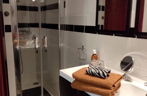 Suite 27, a spacious and charming guest apartment is located in Guingamp. Suite 27, a spacious and charming guest apartment provides accommodation, featuring TV, Wellness Facilities, Fireplace/Heating, among other amenities. This House features TV, Wellness Facilities, Fireplace/Heating, to make your stay a comfortable one.