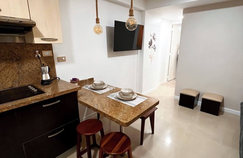 Descubre la comodidad de hospedarte en Suite El Ávila, un apartamento moderno y totalmente equipado, ideal para una estadía tranquila en Caracas. Ubicado en una zona privilegiada, tendrás acceso fácil a centros comerciales, supermercados, farmacias y más, todo a pocos minutos caminando. Además, la suite se encuentra cerca de embajadas y centros médicos, asegurando que tengas todo lo necesario al alcance durante tu visita. ¡Disfruta de una experiencia inigualable en el corazón de Caracas!