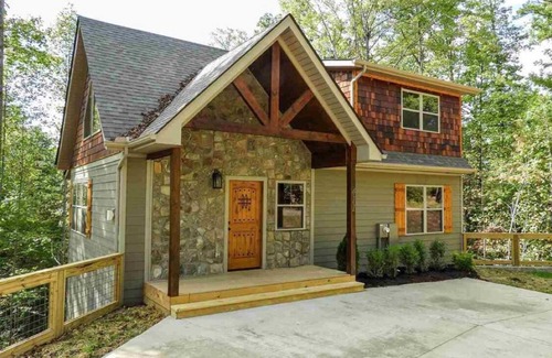 Newer construction located in the heart of the Arts and Craft district in Gatlinburg. One quarter mile to the trolley and three quarters of a mile from Rocky Top Sports Complex. This fully professionally furnished three bedroom, three bathroom cabin comfortably sleeps 8-10. The exterior features Hardi siding, cedar shake and real English Mountain Stone. The interior is wood throughout, floor to ceiling Mountain Stone Gas Fireplace and hardwood floors. Granite countertops can be found in the kitchen and bathroom.