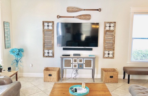 BEDROOM #2: This Master Suite has a king bed and Roku Smart TV and is ideal for anyone in your party that may require the bathtub/shower combo this master bathroom offers (rather than tubless showers in the other areas of the home).
