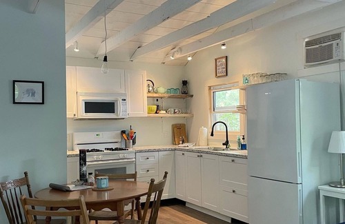 Breezy Cottage has just been completely renovated. We’ve added A/C and Wifi. It has an open concept great room and kitchen. The vaulted ceiling and original beams give the cottage a breezy airy feeling.