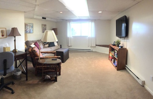 Basement: Two queen sleeper sofas, large flat screen TV, Wii U console with games, desk, washer, dryer, sink, and a large variety of board games, puzzles and toys