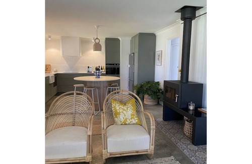 The living area has reverse cycle air conditioning for your comfort or enjoy the lovely wood fires to warm the house on those cool winter nights. The second bathroom is located adjacent to the outdoor patio area. The laundry has a washing machine, clothes dryer, and ironing facilities. There is a smart TV, so you are welcome to use your own Netflix ID. This fully renovated home is tastefully decorated and has modern unpolished concrete floors.