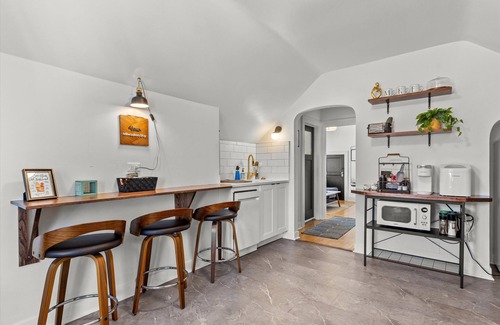 Welcome to your sunlit retreat! This charming upper unit blends vintage character with modern comfort, creating the perfect space for a cozy getaway or a productive work trip.