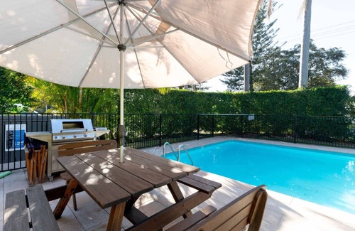 This spacious, sunlit studio in a quiet apartment block is perfect for a weekend getaway, the visiting in-laws, golfing weekend or to lay your head after a friends wedding. Walking distance to cafes and beach, seconds from the direct bus lines both up and down the beaches and minutes from golf courses, this studio is perfectly situated for your visit. When you're done, relax by the private pool with a drink and your favourite book. Or head out for a leisurely bike ride on one of our bikes.