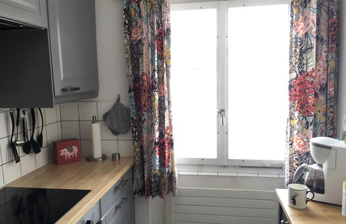 The separate kitchen is fully equipped with a fridge, dishwasher, 4-burner stove, oven, coffee machine etc.