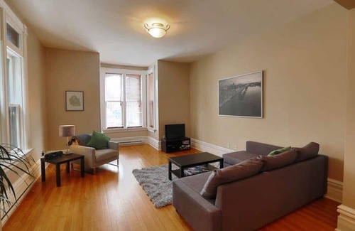 Sunny, large completely renovated large 1 bedroom, 2 bed apartment in the heart of the downtown Hull/Ottawa tourism area. Enjoy the best of the city all within walking distance. Pullout bed in living room can fit 2 extra guests. Fully equipped kitchen, private deck, all new furniture.