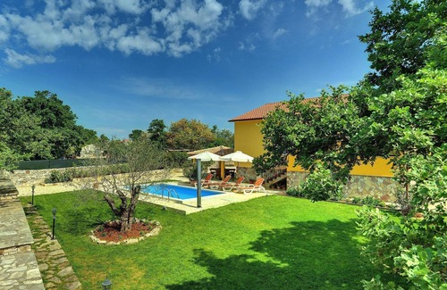 Not far from the village of Svetvincenat is this villa with private pool. It has recently been completely renovated and can accommodate up to eight people. As the villa is far away from crowded tourist centres and surrounded by a beautiful landscape, this property is an excellent choice for a quiet holiday with the family. The plot has a size of 1.000m² and around the pool there are sun loungers available. As the plot is fenced in, pets are also welcome!