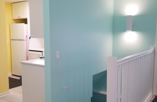 * Modern galley kitchen, with gas stove, microwave, dishwasher, K-cup coffee, drip coffee maker, toaster and more!