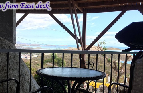 Come and chill out at this tropical getaway with an incredible 180 degree panoramic view of the Caribbean Sea. Relax on the deck in a hammock with your coffee, wine or favorite rum drink enjoying the tropical breeze and views.