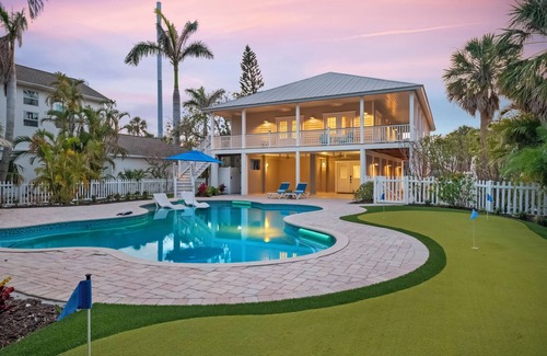 Discover the best of Anna Maria Island from this luxury 2BR, 2.5BA home tucked into the quiet, coveted north end. With space for 4 guests, it’s the ultimate island escape—offering a private heated or chilled saltwater pool, walking distance to sugar sand beaches, restaurants, and Pine Avenue shopping all within just five minutes of the house.
