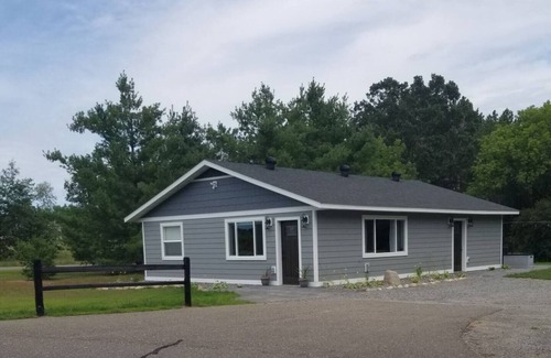 Kick back and relax in this calm, stylish space. Enjoy private, newly remodeled home with outdoor patio, lighting, grill, outside fire pit, large yard, boat landing 1 mile away, and South Long Lake Dam 2 blocks away. Driveway is able to fit 2 trucks with trailers. The view of the sunset is amazing at this location. This property is unique as it was the former Busbey's store that sold groceries, gas, and supplies. It operated from the 1930's till the mid 1980's. Enjoy!