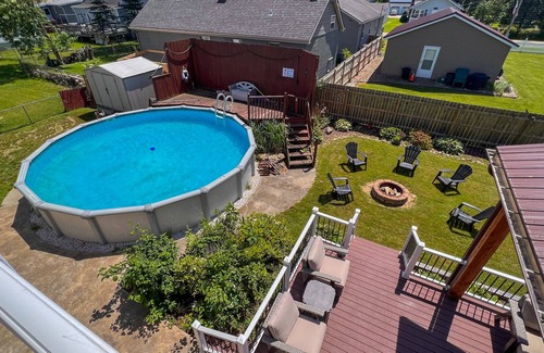 Experience a memorable stay at the Luxe Family Fun House at Sunset Bay Beach on Lake Erie. This spacious house has 5 bdrms, 4 baths with an open concept kitchen, living and dining room. Relax outdoors on the beautiful covered patio with a large backyard, pool & fire pit. Hang out in the spacious screened garage to enjoy a game of billiards or darts while watching the sporting events on the big screen TV. Four car driveway w/ plenty of space to park. Safe, quaint, and 3.5 blocks to the beach.