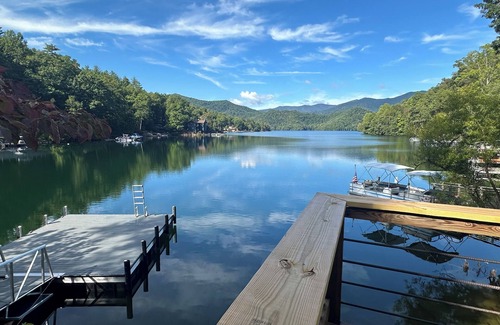This delightful cabin on Lake Santeetlah offers stunning views and a large boat dock, ideal for enjoying the lake. There are two cozy bedrooms with a mix of sleeping arrangements, including king, queen, twin beds, sleeping up to six. A covered and furnished deck overlooks a fantastic view of the Nantahala mountains, one of the best on the lake. Explore nearby coves with two available kayaks, or swim and float right off the boat-ready dock. The cabin has AC, WiFi, Smart TV, a washer/dryer and parking for two cars. Explore nearby hiking trails, waterfalls, and great local food and music, in one of North Carolina's most pristine areas.