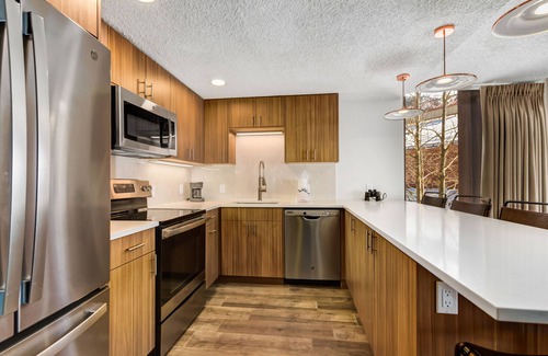 The condo comes with everything you need for icy cocktails or great homemade meals. Enjoy the fruits of your labor with the warmth of the wood fireplace while taking in the beautiful view.