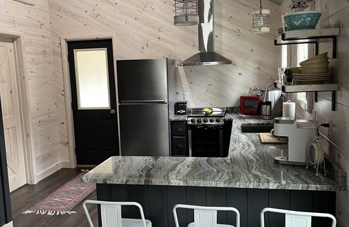 Exceptionally clean , newly done cabin taking reservation. One bedroom with full size bunk bed, futon in the living room area for extra sleeping. Tiled walk-in shower, three seasons room, and hard surfaces throughout for an exceptionally clean stay. All linens (including blankets) are washed after each and every guest for a clean night's sleep. There is a fire pit in the back yard with some wood to get it started, high-speed wireless internet, all walking distance to all the stores and restaurants in downtown Mio.