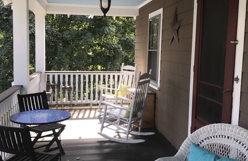 This apartment has been recently updated while maintaining the original charm of this 1910-era home. Guests will enjoy a private 2-bedroom apartment with its own entrance. You will gain entry with a keyless lock with a passcode. There is off-street parking for 2 cars. This cozy space includes a mudroom with plenty of space for your belongings. There is a comfy TV room with a smart TV. There are two bedrooms, one with a queen bed, one with three twin beds (2 loft and 1 floor level). Enjoy your coffee or dinner on the lovely and spacious private front porch. The kitchen is fully equipped for cooking at home, if that's your thing - dishwasher, disposal, stove, microwave, refrigerator, drip coffee maker, toaster, and tea kettle. There is also a large play loft on the 2nd floor of the apartment. It is full of all types of toys, games and fun for kids of all ages.